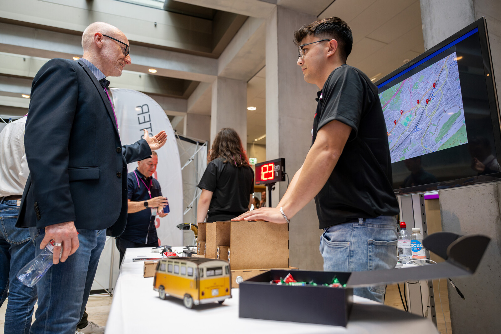 Das Interesse an den diesjährigen Industrieprojekten aus dem Studiengang Wirtschaftsingenieurwesen war gross: Rund 300 Besucherinnen und Besucher sind am 5. Juni an den OST Campus St.Gallen gekommen, um die Ausstellung zu besuchen und Kurzpräsentationen der Studierenden zu hören. Untern den Gästen waren Industriepartner, interessierte Unternehmer, Freunde, Familienangehörige und Dozierende.