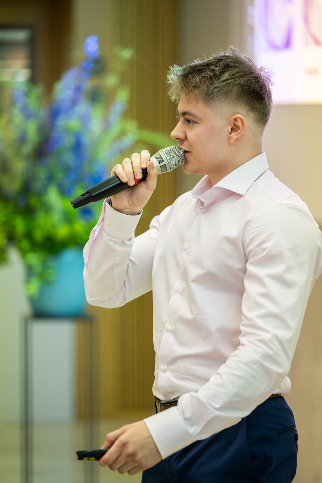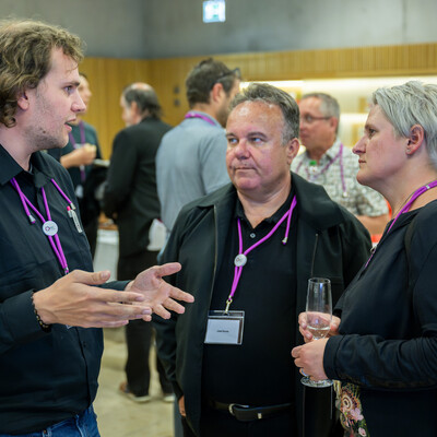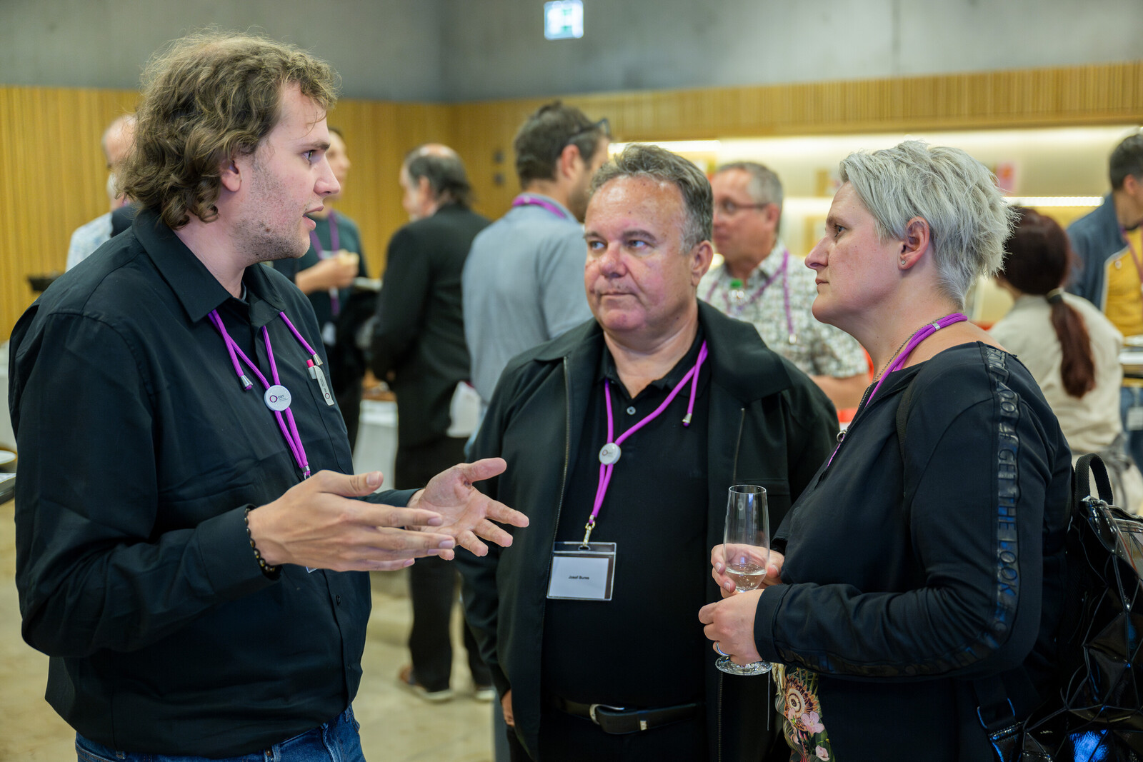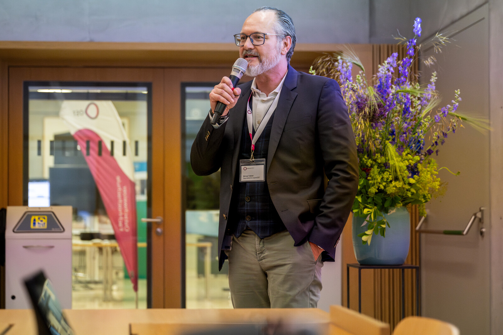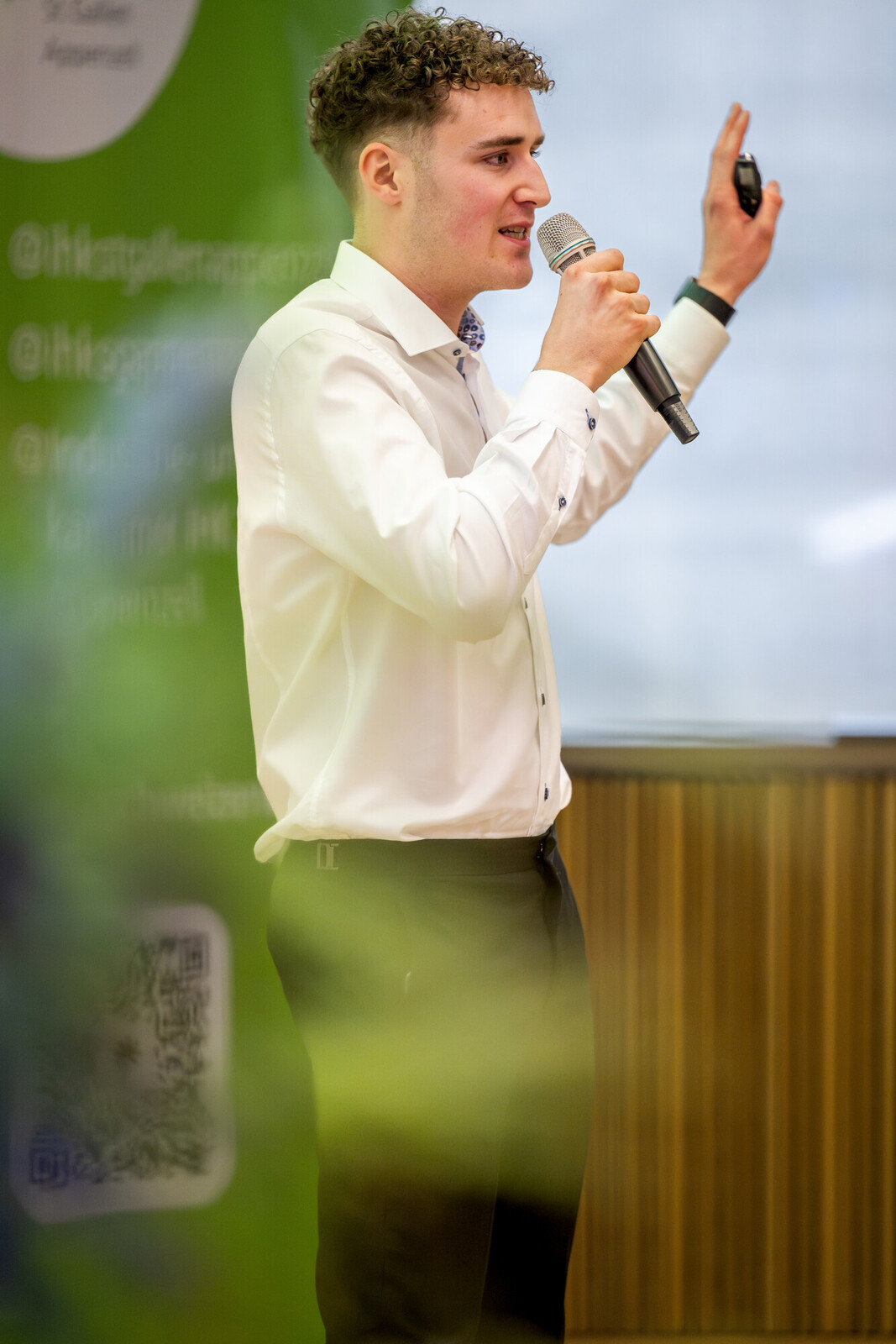 Moderiert wurde der Abend von Thomas Utz, Programmleiter des Moduls «Industrieprojekt». Für ein Grusswort standen Knut Siercks, Leiter des Departements Technik, Markus Bänziger, Direktor der Industrie- und Handelskammer St.Gallen-Appenzell und Michael Federer, Leiter alumniOST auf der Bühne.