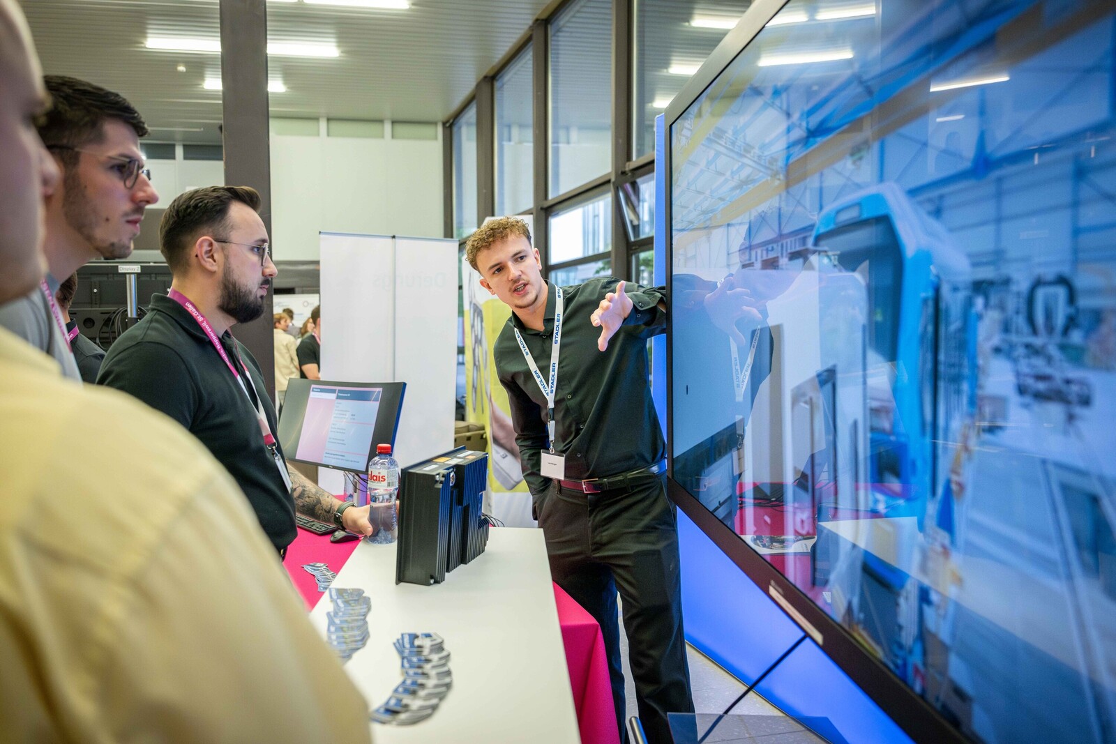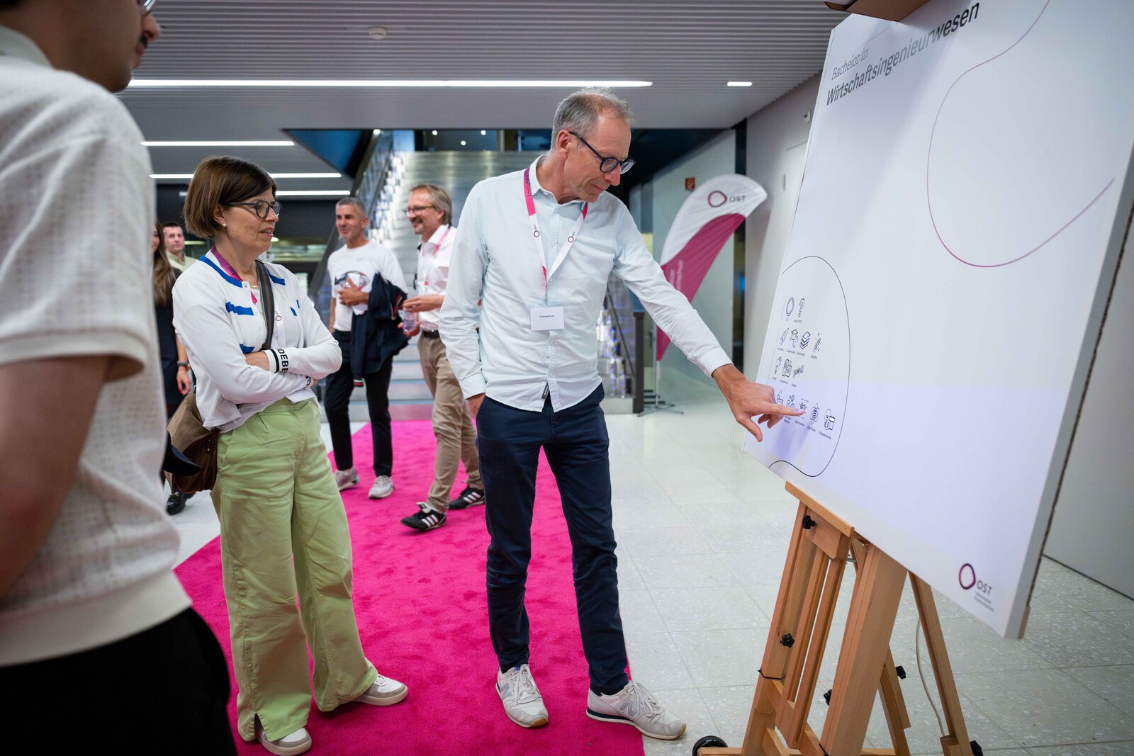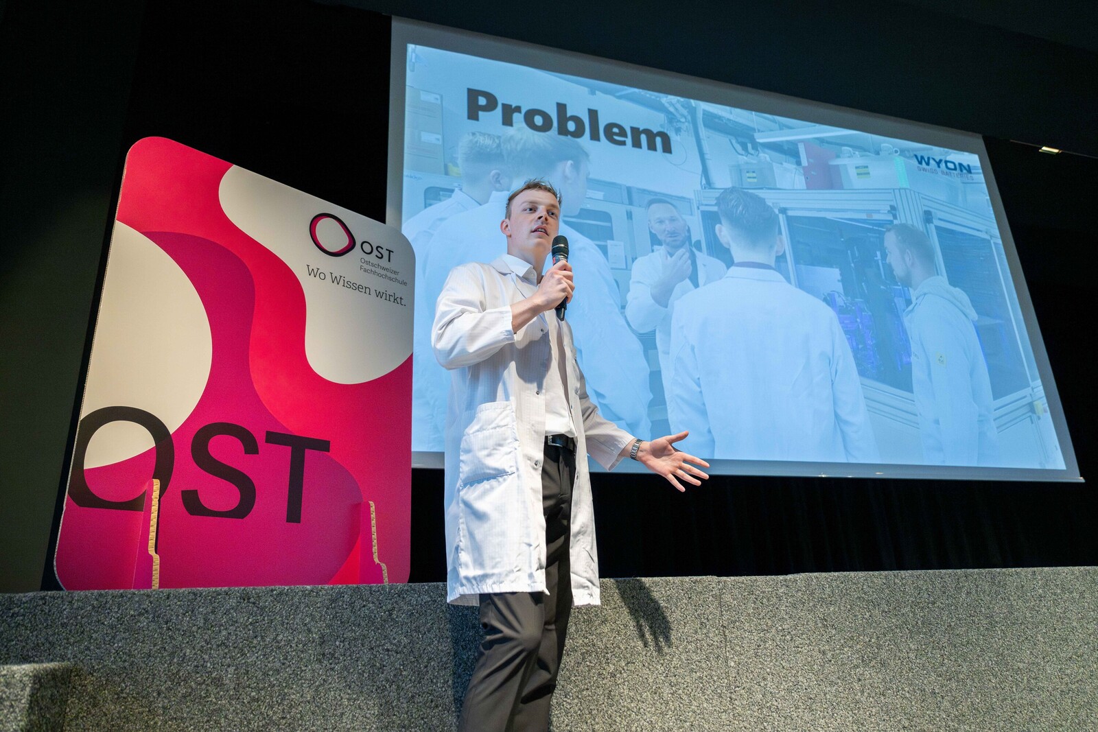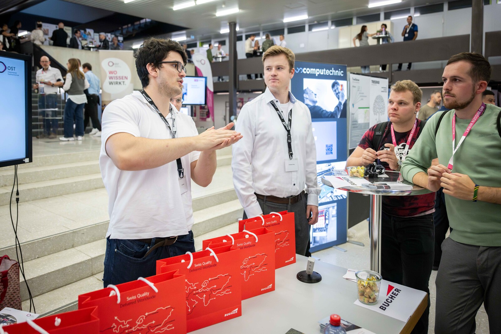 In festlichem Rahmen präsentierten die Studierenden aus dem Studiengang Wirtschaftsingenieurwesen am 4. Juni 2025 ihre Industrieprojekte. Rund 300 Gäste nahmen am Event am Campus Rapperswil-Jona teil: Freunde und Familienangehörige der Studierenden, Dozierende sowie Vertreterinnen und Vertreter aus der Industrie und Wirtschaft. Jedes Team hatte drei Minuten Zeit, um sein Projekt in einem Pitch vorzustellen und die Gäste an den eigenen Stand zu locken.
