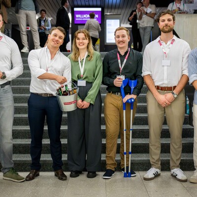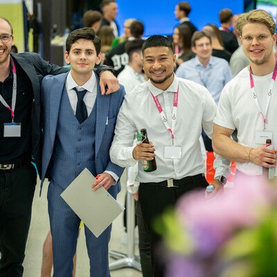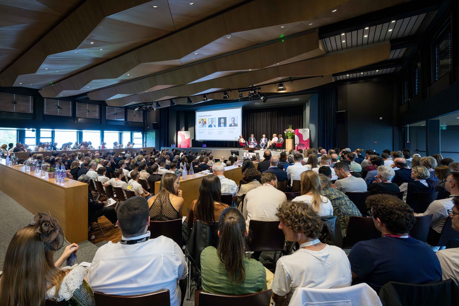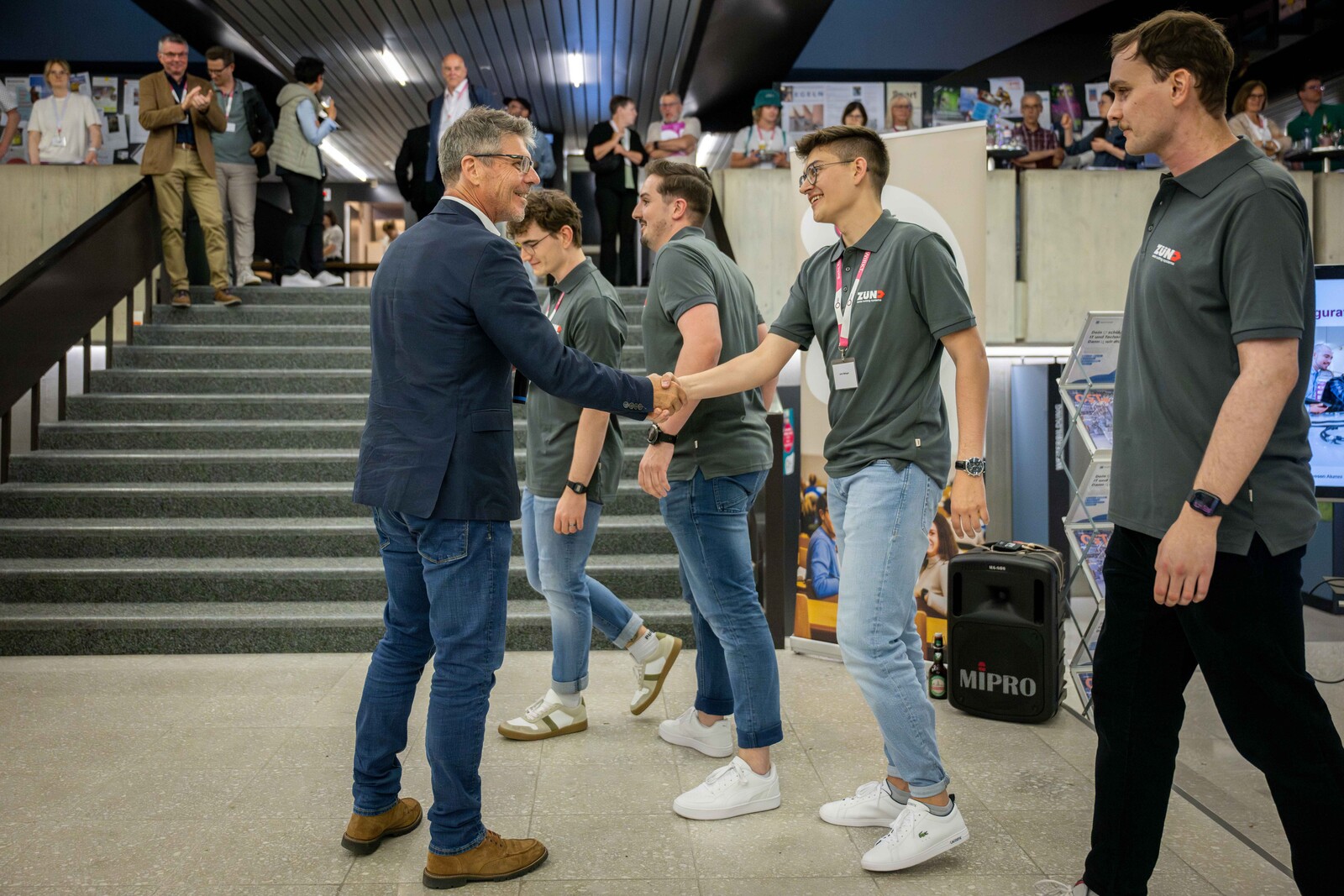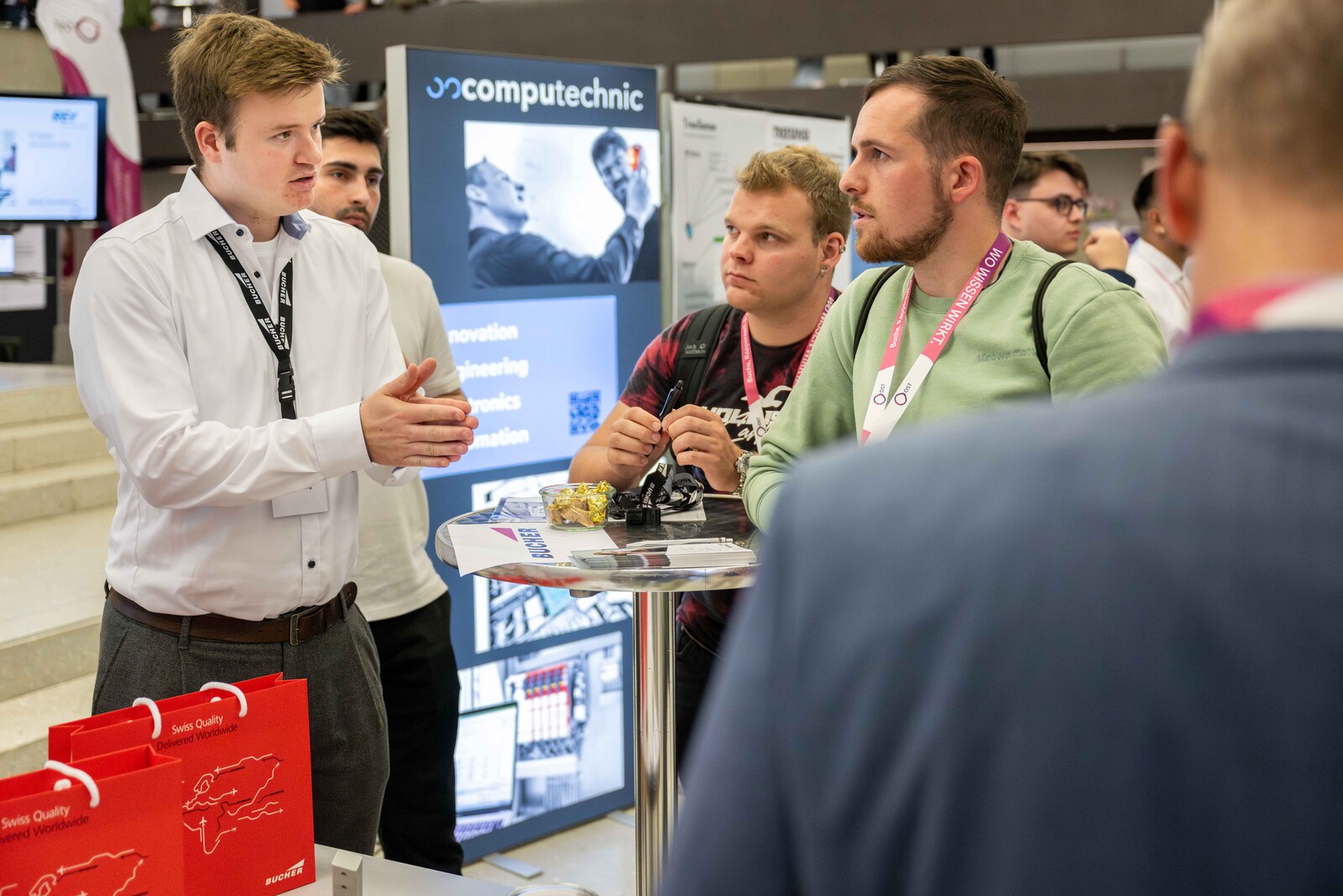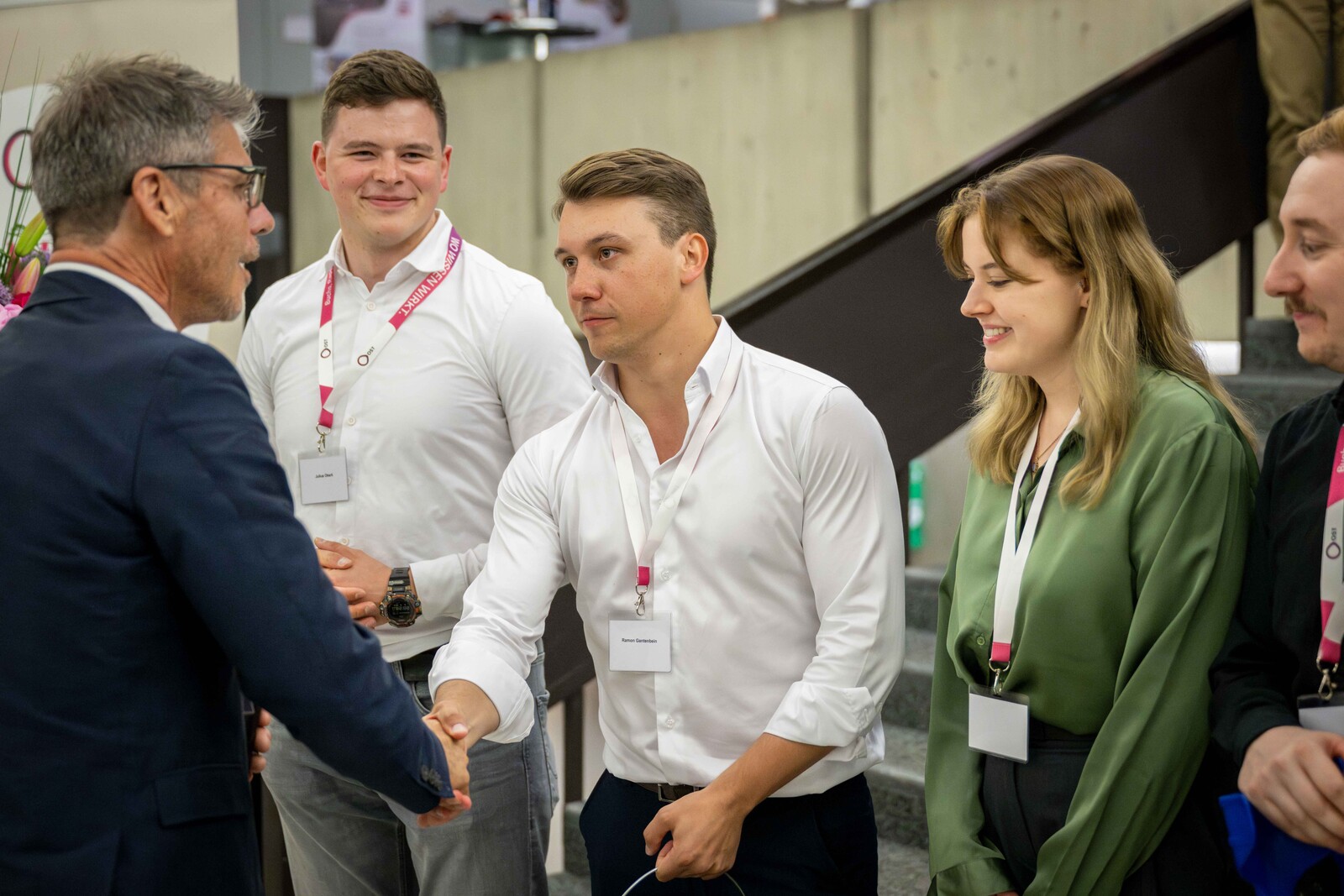 In festlichem Rahmen präsentierten die Studierenden aus dem Studiengang Wirtschaftsingenieurwesen am 4. Juni 2025 ihre Industrieprojekte. Rund 300 Gäste nahmen am Event am Campus Rapperswil-Jona teil: Freunde und Familienangehörige der Studierenden, Dozierende sowie Vertreterinnen und Vertreter aus der Industrie und Wirtschaft. Jedes Team hatte drei Minuten Zeit, um sein Projekt in einem Pitch vorzustellen und die Gäste an den eigenen Stand zu locken.