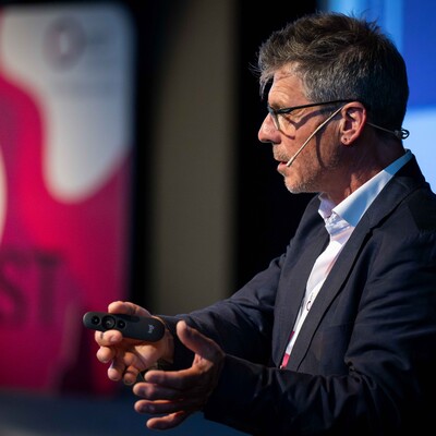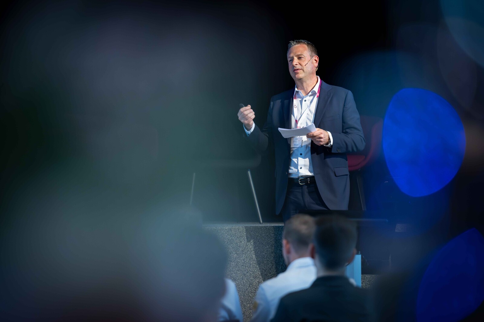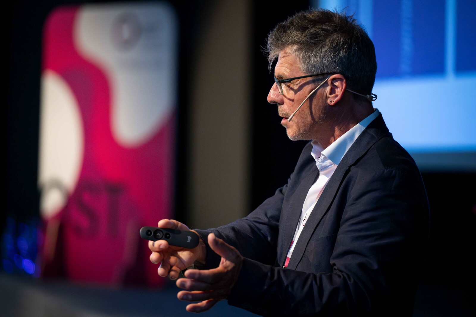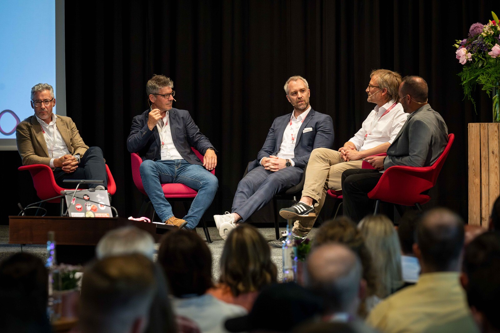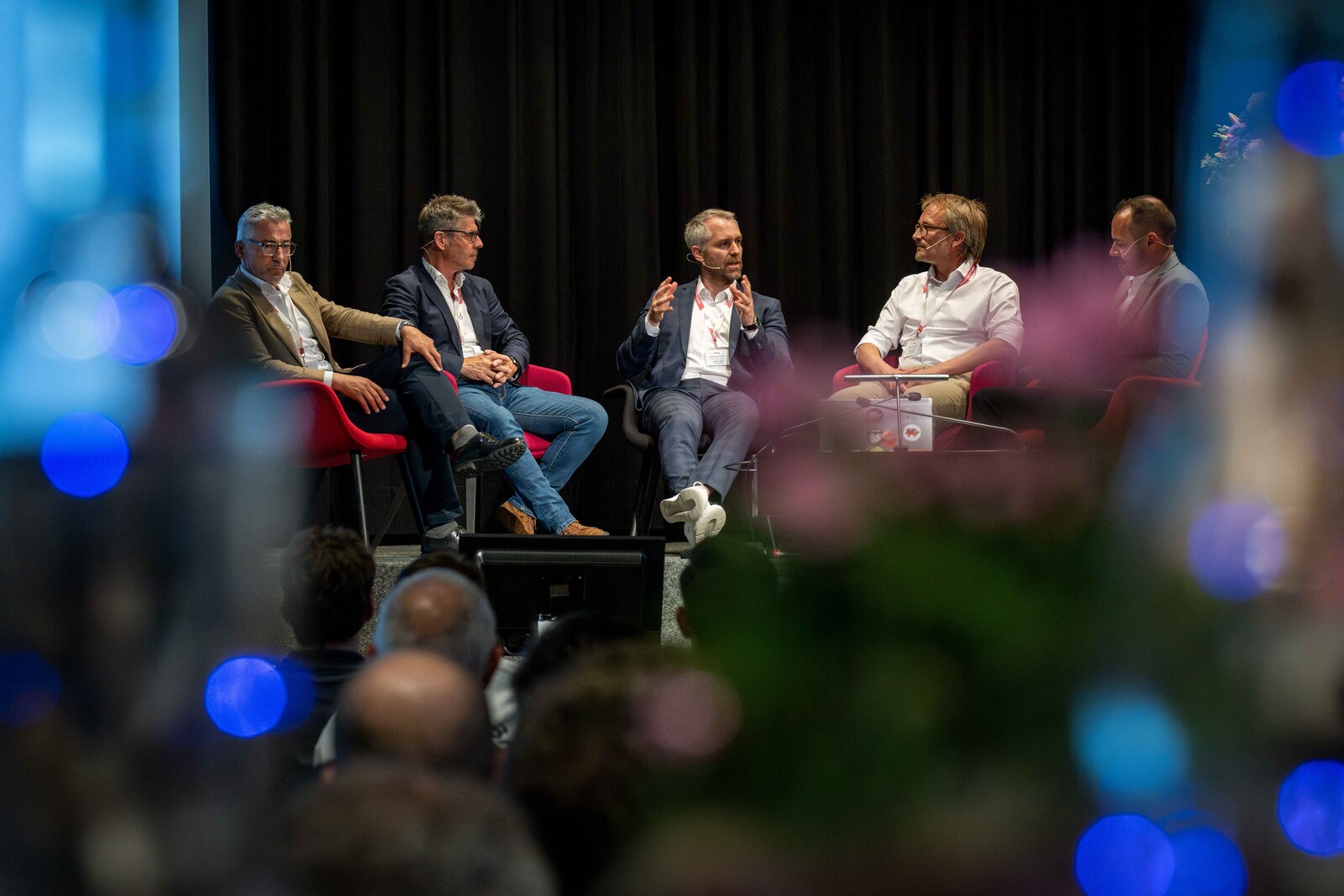 Andreas Wälti, CEO des Technologieunternehmens Evatec, richtete ein Grusswort an die angehenden Wirtschaftsingenieurinnen und -ingenieure. In einer Podiumsdiskussion sprachen Vertreter aus Wirtschaft und Industrie über den Mehrwert für Unternehmen, wenn sie mit der OST zusammenarbeiten.