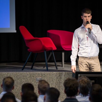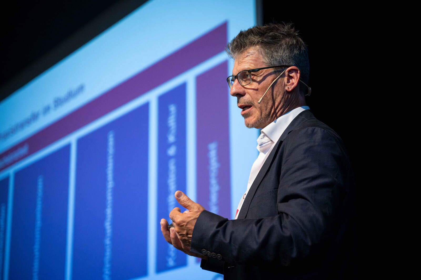 Thomas Utz, Programmleiter des Moduls «Industrieprojekt», moderierte den Abend.