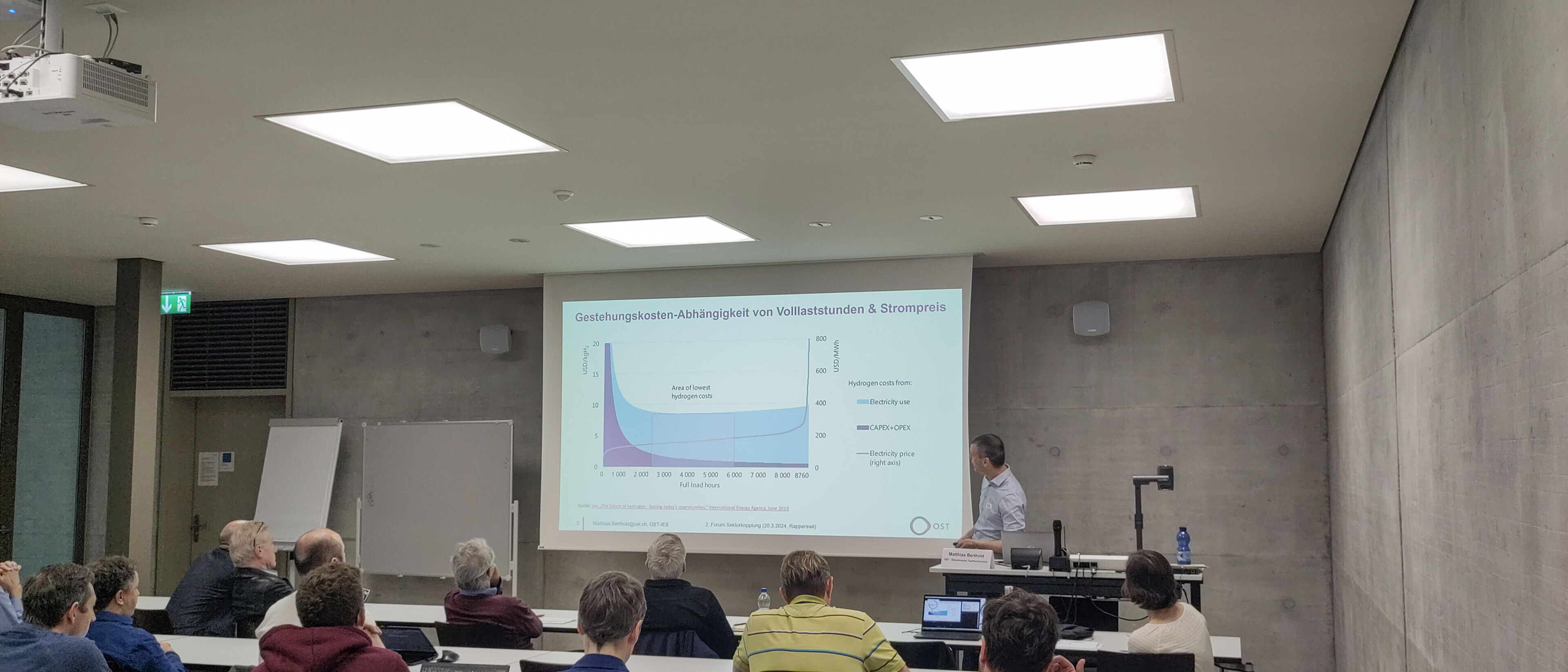 Zunächst präsentierte Tanja Herdt vom Institut für Raumentwicklung (IRAP) die durchgeführte Testplanung für das neu geplante «Limmattaler Energiezentrum» der Limeco. Sie zeigte aus raumplanerischer Sicht Ideen für den schrittweisen Ausbau und die Teilhabe der Bevölkerung in einem Naherholungsgebiet. Im nächsten Vortrag von Boris Meier vom Institut für Energietechnik (IET) ging es um «Green Energy Hubs», saisonale Energiespeicherung mittels Methanol und Wasserstoff zur Lieferung von Wärme und Strom im Winter sowie Wasserstoff für die Mobilität. Ein erster solcher Hub soll bei der KVA Horgen umgesetzt werden.