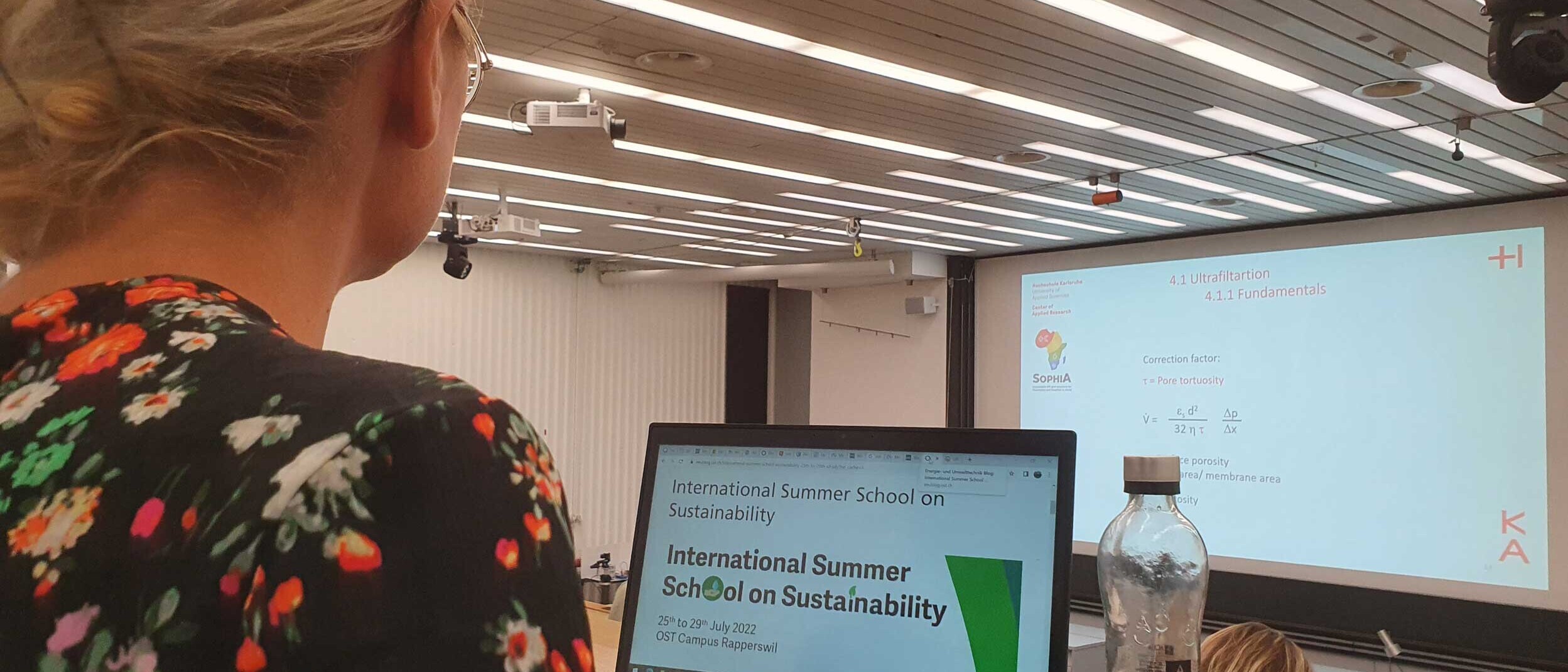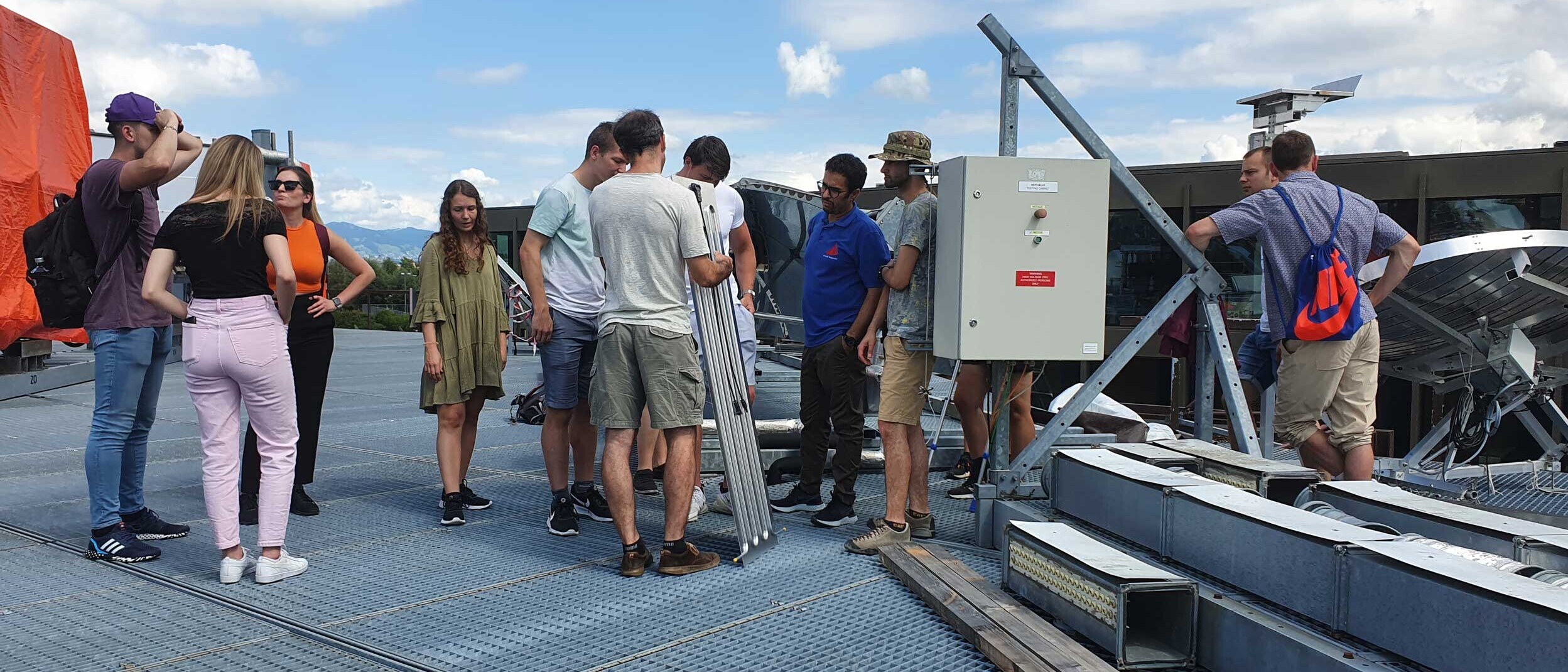 30 Studierende der drei Hochschulen HKA, OST und TUB beschäftigten sich vom 25. bis 29. Juli 2022 intensiv mit den unterschiedlichsten Nachhaltigkeitsthemen, von erneuerbaren Energien über nachhaltigen Wasserbau, nachhaltige Produktionsmethoden bis zu umweltfreundlichem Verkehr. Im Fokus standen dabei unter anderem die beiden gemeinsamen EU-Projekte der OST und der HKA: «TRI-HP» und «SophiA». Die Studierenden konnten die in TRI-HP entwickelten Wärmepumpen und die für afrikanische Krankenhäuser vorgesehene solargestützte Kühlung und Wasseraufbereitung von SophiA in Theorie und Praxis erfahren. Die Summer School bot vormittags diverse Vorträge zu den unterschiedlichsten Projekten und Technologien an. Nachmittags gab es gemeinsame nachhaltige Aktivitäten wie Exkursionen zum Linth Werk mit seiner Renaturierung eines Flusslaufs und zu Geberit sowie einen Workshop zur eigenen Energie des Körpers. Nach dem gemeinsamen Abendessen wurden in Gruppenarbeiten Nachhaltigkeitskonzepte für die eigene Hochschule erarbeitet.