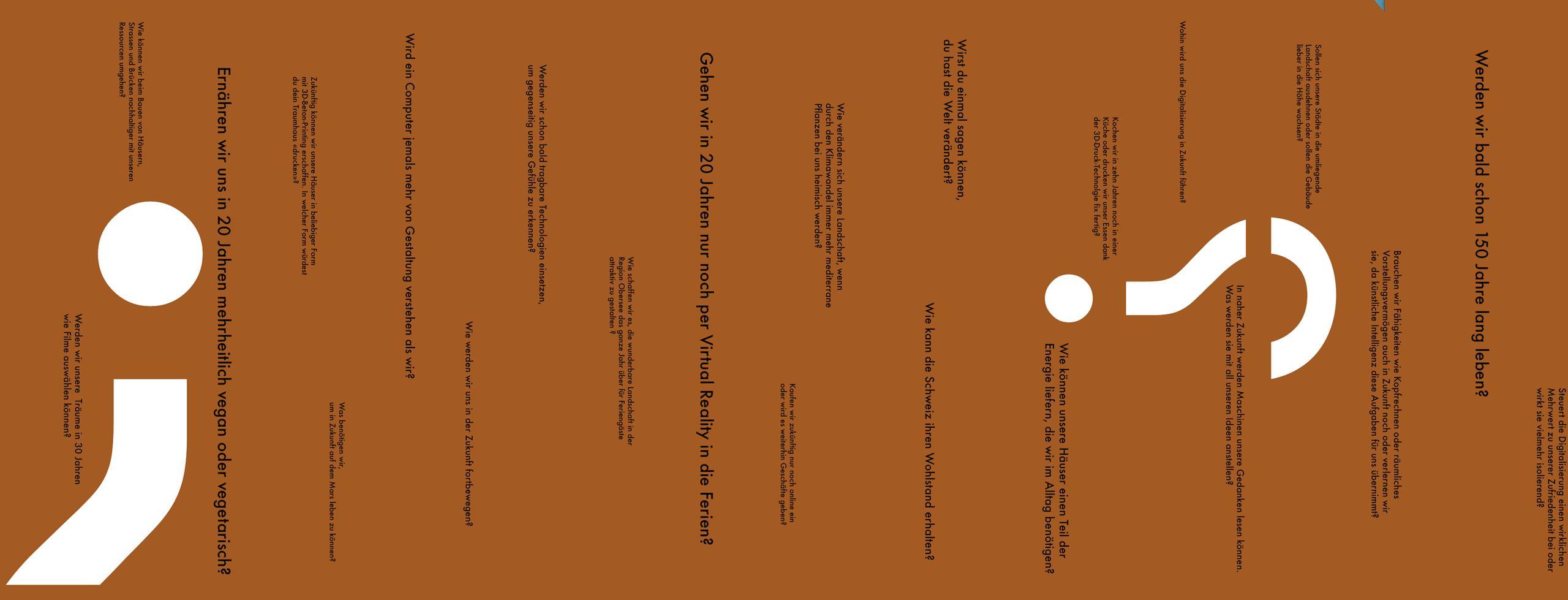 Wird ein Computer jemals mehr von Gestaltung verstehen als wir? Stell dir vor, wir würden nur noch erneuerbare Energien nutzen. Wie würde unsere Welt dann aussehen? Schaffen wir es, den Klimawandel zu bremsen? Was ist uns eine intakte Umwelt in Zukunft wert?