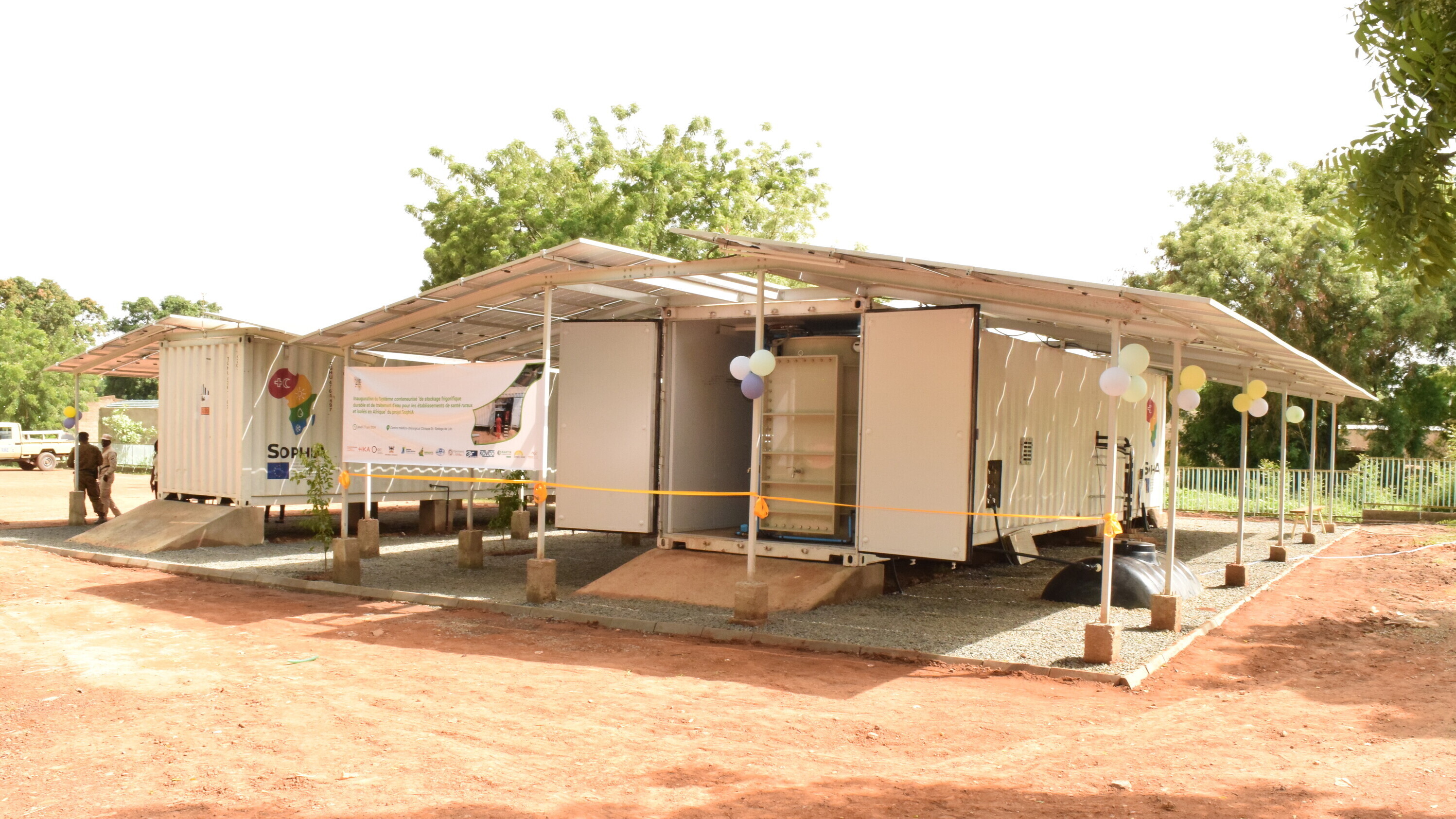 SophiA systems are mainly manufactured in Africa. After the systems have been developed by the consortium and built by the SophiA partner Everflo in South Africa, they are gradually installed in four rural hospitals on the African continent and evaluated via monitoring. Installations are planned in hospitals in Burkina Faso, Cameroon, Malawi and Uganda. In Burkina Faso, the containers have been successfully in operation at the Sedogo Hospital in Léo since May 2024.